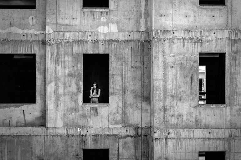 Last woman on Planet Earth series. A lonely, beautiful, fragile woman in an abandoned, post-apocalyptic concrete city. Printed with 5cm white border. Giclée print on Hahnemühle Photo Rag Baryta paper. Signed Certificate of Authenticity included.
