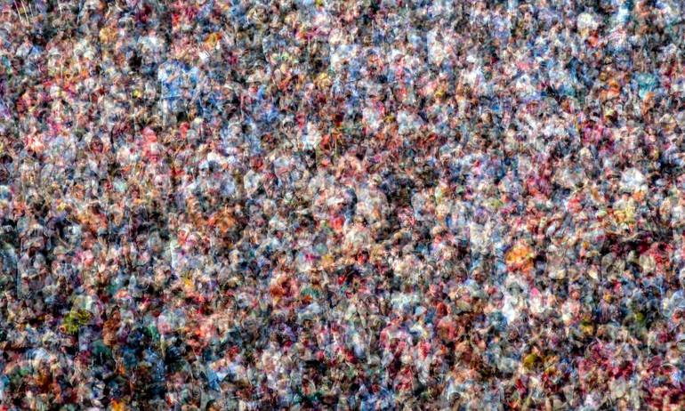 Multiple images of human crowd have been used to create this abstract expressionism. Human is considered as a species from an authorial point of view.