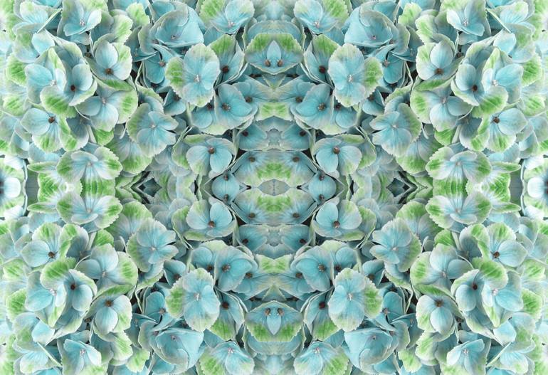 In this artwork, I focused on the natural beauty of hydrangeas, using a kaleidoscopic and symmetrical composition to create a sense of harmony and depth. The cool blue and green tones evoke a calming and serene atmosphere, while the intricate repetition of the petals draws the viewer into a meditati...