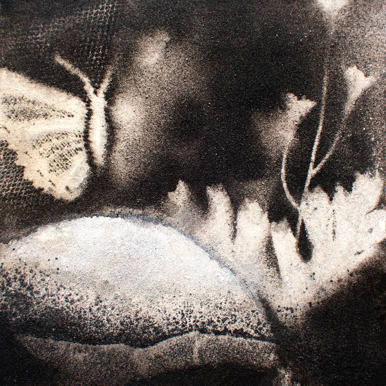 In a veil of whispered dreams, stands the shadow of a butterfly, among leaves of ebony and silver, where mystery dances and reveals. Grainy the weave of time, that envelops the shades of thought, nebulous yet crystalline, like a sigh among the stars. A work that hides and reveals, in the silence of ...