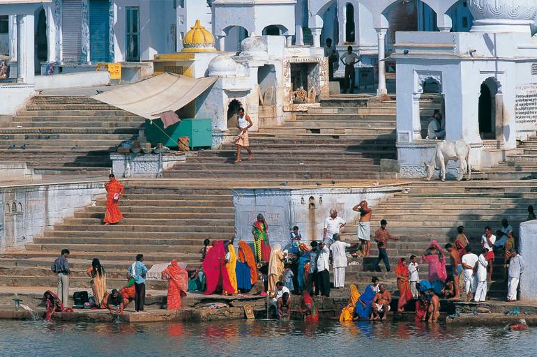 Indian washing his linen in waters of the Ganges in India