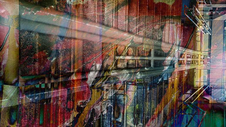 I have always loved architecture and the beauty of architectural design. I experiment with layers when I create a new piece and in this case, I chose to merge a photograph of a stairwell with a photograph of an canvas painting I had finished during the summer. What emerged was entirely new and spa...