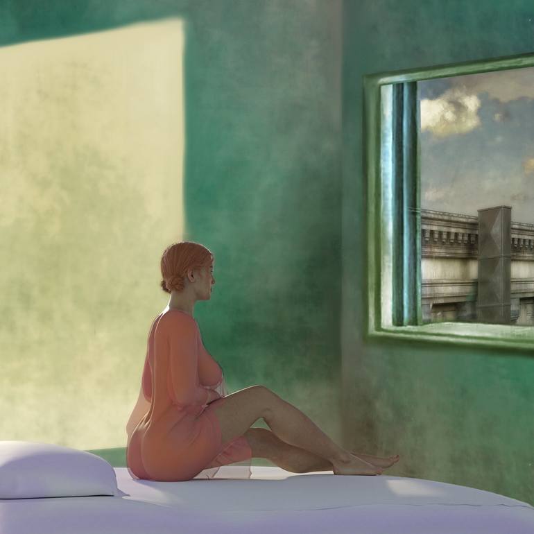 Inspired by Edward Hopper. Photography: Color, Digital, Manipulated, Paper on Paper. 4/5 Limited Original Large Edition . Print on Canson Infinity Paper 300 g. Printed with 5 cm white border. Signed certificate of authenticity included.