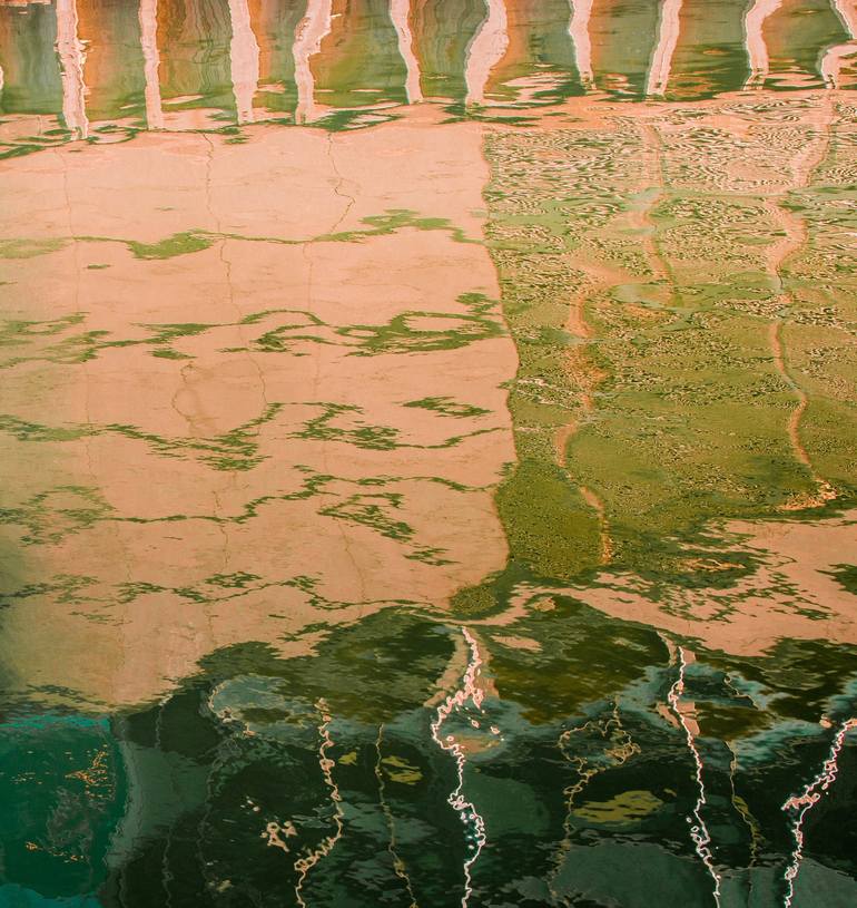 An abstract view of the river Thames, London with just the sun reflecting off the bank. Closing in to pick up all the detail of the colour in the reflection. Photographed using just natural light and reflections, no manipulation. PLEASE ENQUIRE FOR FRAMING OPTIONS AND OTHER SIZES