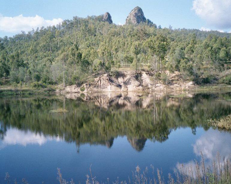 Photo Taken in April of 2000 at Ivory's Rock Conference Center outside of Brisbane, Australia. Ivory's Rock is in the background and reflected beautifully in the lake. April is end of the dry season in Australia and this lake was full from recent rains as autumn began in the southern hemisphere. In ...