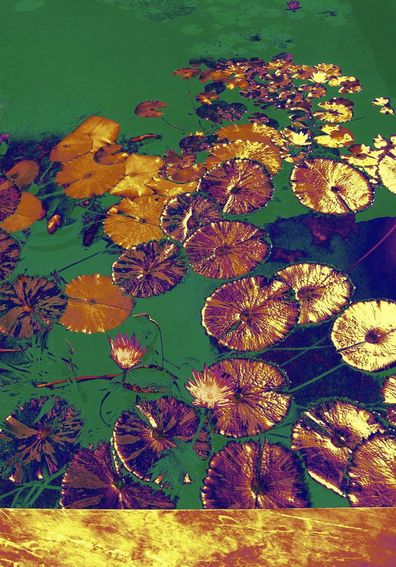 KOI (Limited edition of 3) In this piece, curious koi fish eyed me cautiously from beneath a cluster of lily pads that glistened in the golden sunlight of a quiet Malibu morning. Can you see a koi? MY APPROACH to photography is through the eyes of a painter – a field in which I am formally trained....