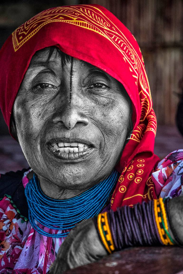 A Kuna grand mother stares to the deep blue caribbean sea. Understanding it all