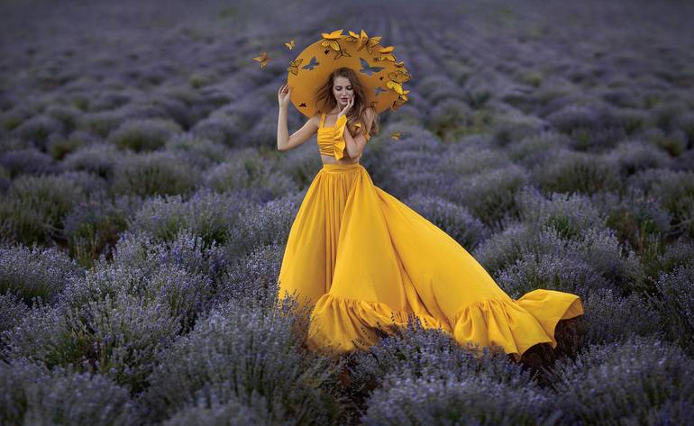 This is one of the photos from the "Soul of Flower" collection. Limited edition Magnum Opus. In a lavender field in Moldova, a captivating shot was taken, capturing the essence of “Lavender.” The girl in a flowing yellow dress and a hat adorned with butterflies embodies the spirit of this enchantin...
