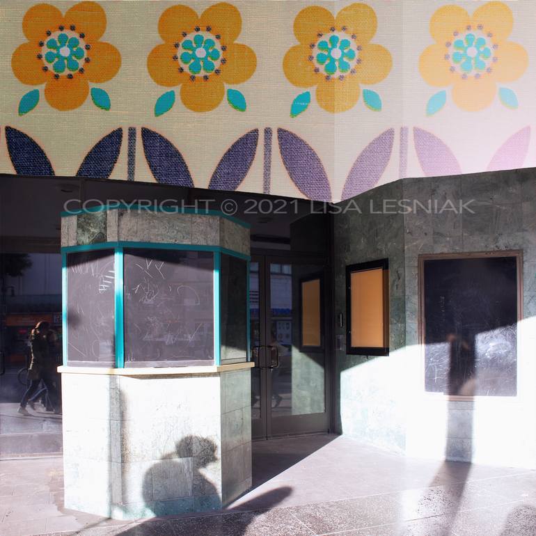 The photo-collages are mash-ups of ordinary vintage fabric and architectural surfaces throughout LA. The textile fragments, patterns or motifs are already disassociated from their initial context—clothing or furnishing fabric cut from bolts of yardage in full repeat. The digital image of the fabric,...