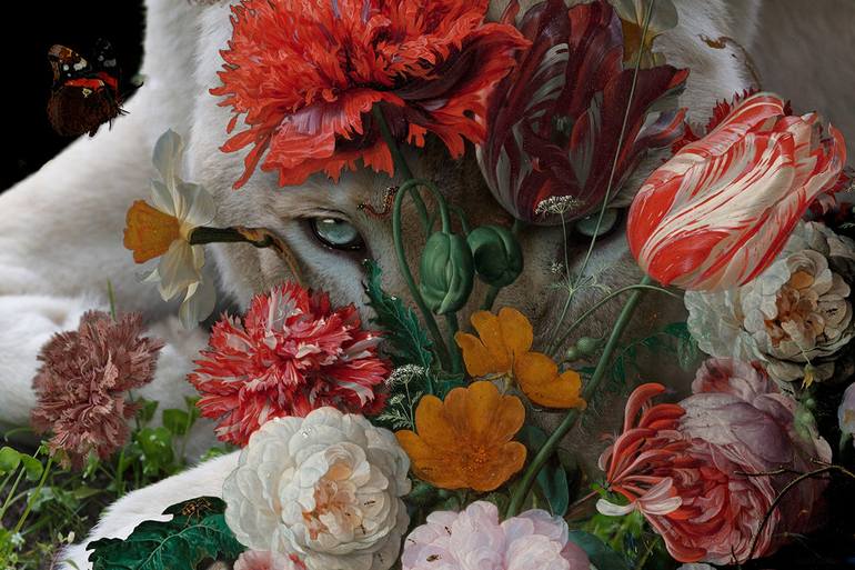 Lioness And The Rose | 2020 | Animal Bouquet Photography Composition, Collage Photography Edition of 4 + 1 Artist’s proof (AP) Image Size (L) = 150 x 100 cm | ± 59 x 39 inch Certified Art Giclée on Hahnemuhle Photo Rag Baryta Fine Art Paper, produced to the highest standards, proofed, checked and...