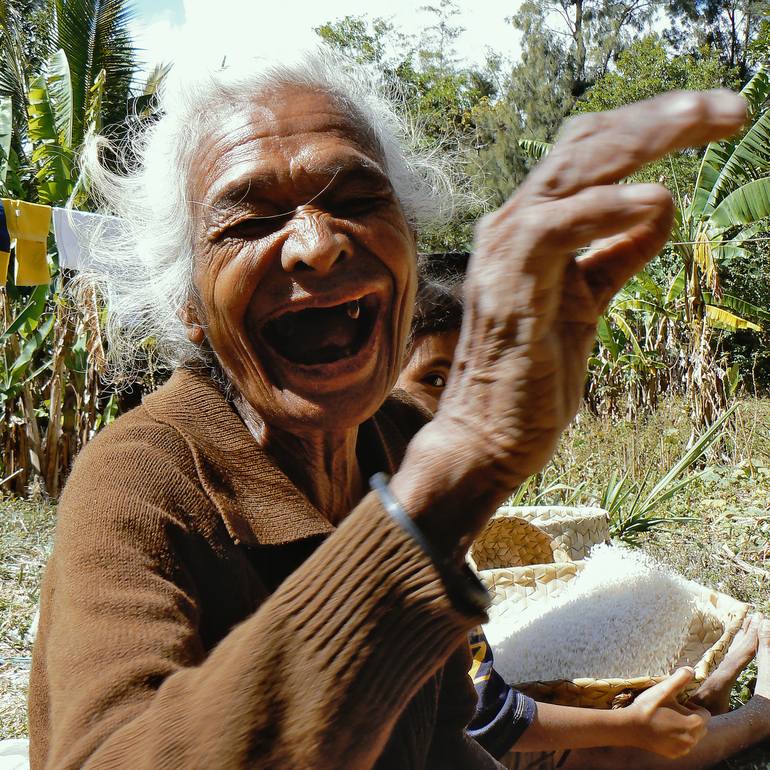 Photograph no.#056 from the "Timor Runguranga" photobook (). Portrait of grandma Du'u Kai who's remedy for a healthy life is to laugh as much as possible. She became the cover of my new book.