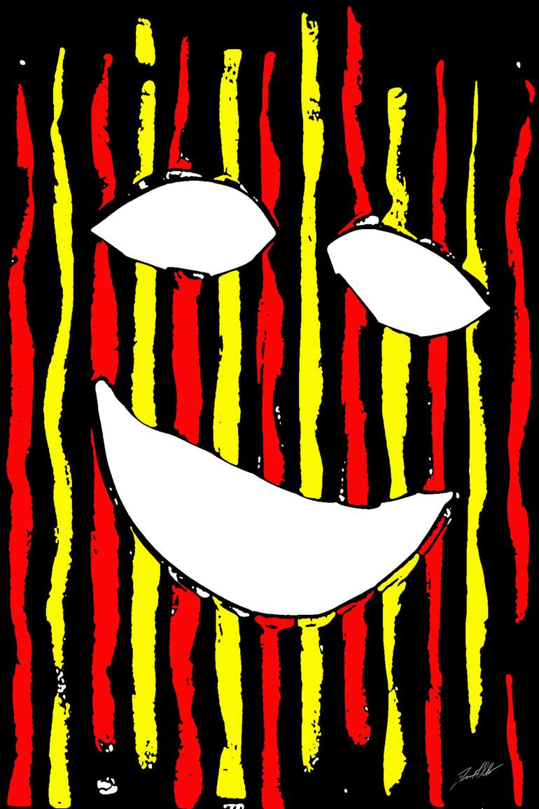 This is a digitally enhanced photograph of a three dimensional wall hanging from my "Faces" series. In "Faces" I am exploring the presentation of human thoughts and emotions through facial gestures with minimal features.