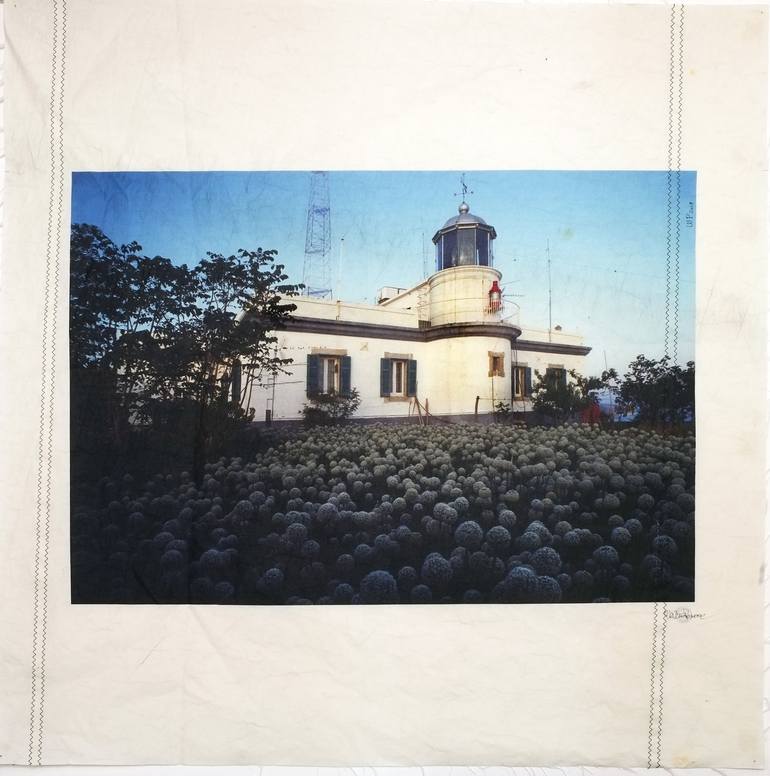 This photography is printed on a cutout of an old seal and it is a unique piece.The idea that prompted me to carry out this photography (I taken in 1984) is to reveal, many years later, on a sail the images of the lighthouses "potentially latent" on its surface when the sail where navigating driven...