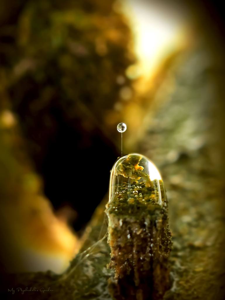 Lingam - a magical moment of creating a new world. This macro story I caught in September 2020, hiding from the rain in our old mossy greenhouse. I noticed the tiny raindrop, that was hanging on the spiderweb from a mossy twig. I was lucky to catch the moment just before the big drop of water fall...