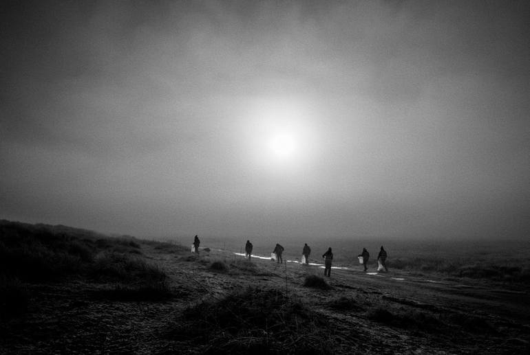 Volunteer litter pickers working along the beach at St Annes On Sea in the North West of England. The low winter sun and sea mist add mood and atmosphere to the image. The image is personally printed by Jeff on heavyweight fine-art baryta paper. There is a 1 inch handling border around the print i...