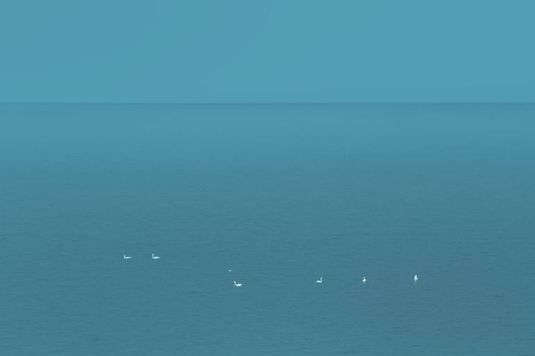 Lonely swans by the sea. Numbered and signed. Printed on Hahnemühle Photo Rag baryta paper. Paper size 60 x 90 cm; image dimensions 56 x 86 cm The photo is printed with a 2 cm white border on each side, which makes it easy to frame.