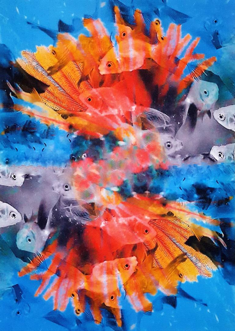 I was inspired from my visit to the London Aquarium and seeing all the fishes and coral up close, so I decided to recreate my own image to represent both magic realism and illusion through digital effects on 'Photoshop'. I used a photo taken at the London and Aquarium and layered with chosen looked ...