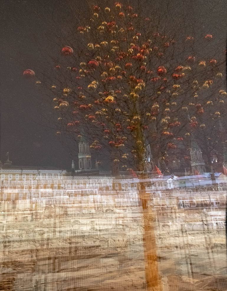 Archival Digital Print mounted on panel with resin over. This original was inspired by vibration of city lights in the Red Square, Moscow, during the New Year's celebration.