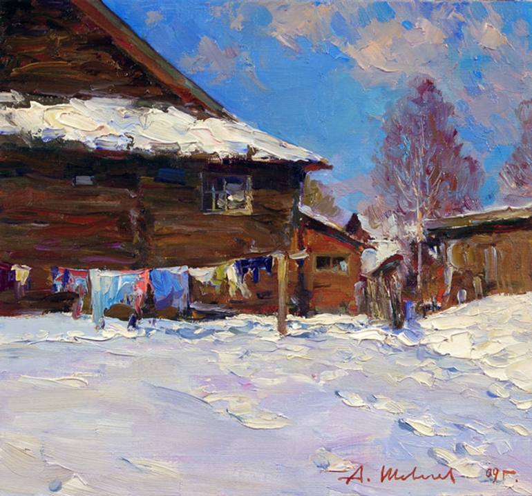 His Works is kept in RybinskArt Museum, Mologa memorial Museum, by Chairman Yaroslavlregion, by joint-stock company(JSC)Moskovit, by property (JSC)Rybinsk motors(NPO)Saturn,private(individual) assemblies of Moscow, Rybinsk, Saint-Petersburg, Yaroslavl, and as in Germany, USA, Finland, Sweden, Holland.Contact telephone in Rybinsk: +7(4855) 244-323, (MTS) +79108177547 e-mail: His(its) art aspires to the pacified harmony. In it is underlined horizontal constructions composition-rest and balance.The big color volumes sated with set of details and shades of color,give to his(its) pictures solemn sounding. The artist has got wide experience and skill during free copy practice in the Hermitage. Exact figure,restraint color a decision-tribute to art of old masters,to the academic traditions. Retrospective searches of the artist if they in any measure are present at city landscapes of old Rybinsk, do not be ar(carry) in themselves artificiality and meditation. It not melancholy on the past and not occult sessions. It them there is no mysticism and stylization under olden time. The artist aspires to transfer thet,in many respects for ever left, an atmosphere of a country town of Rybinsk when it was one of the most beautiful cities on Volga.