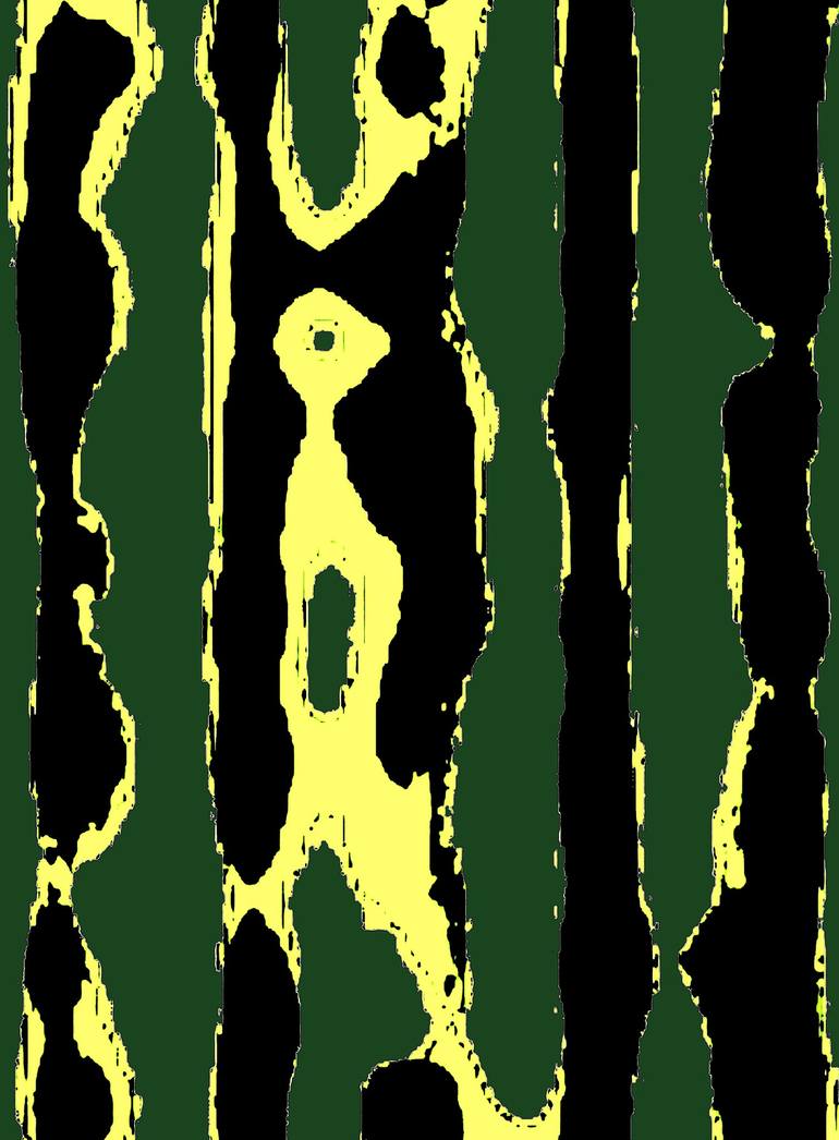 Martian, Walking 4d6 is an abstraction of a very small detail of one of the images in the Surfer Dreams series, literally less than one eighth inch square, of the main initial image, which has been extensively worked and altered. Some of the wavy lines of the original image, thus seen in fine detail...