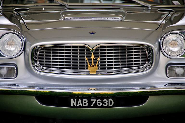 Front view of a Maserati Italian luxury sports motor car photography by Andy Evans Photos Limited edition prints are processed using Hahnemuhle Baryta fine art paper. A bright white based, acid-free and lignin-free paper benefiting from a high-gloss premium inkjet coating combined with a pitted surf...