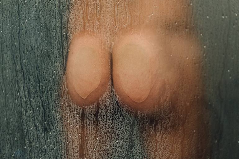Domenico's wet butt against the glass wall while he's taking a shower