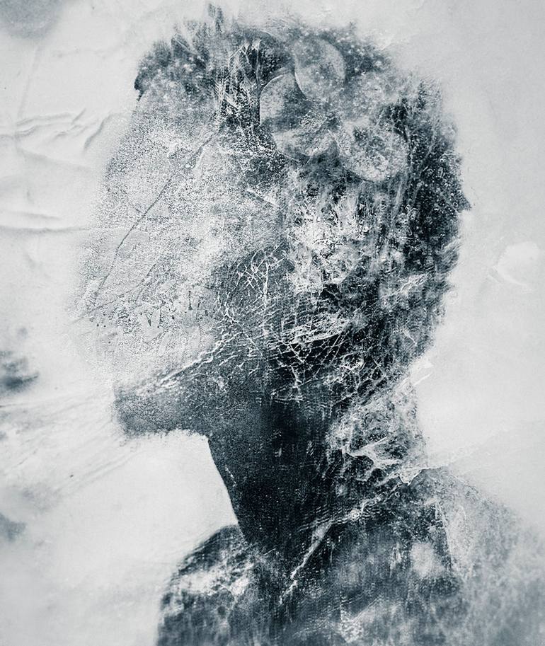 This is a photo of a frozen print with a portrait i made in the melting process made for a series called SMELT (melt) it is a personal journey combined with a look at global warming, we are in the melting process and on the other hand I am melting and opening up in a slow transformational process. ...