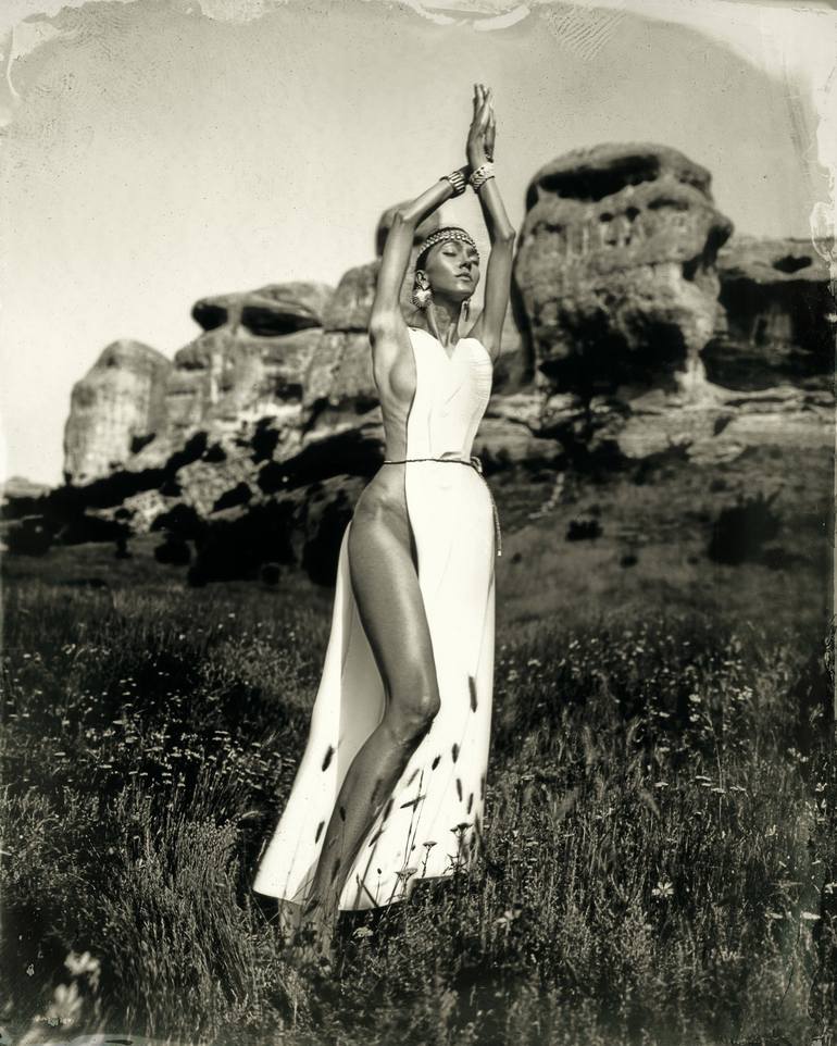 This work is one of a series "Lost Sparta" of mystical, meditative artistic images showing gorgeous .staishaa This image is made using 19th century authentic wet plate collodion technology with 8x10 inches camera on blackened silver plates. Pure sculptural beauty of women frozen with long exposures ...