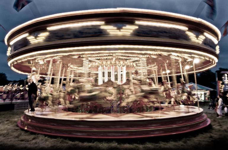 A handheld shot from the Hoppings in Newcastle. The biggest fairground in Europe. This was one of a series of pictures exhibited at Somerset House and auctioned off at Christies. Please feel free to buy a large print from Saatchi Art. My images are at the lowest price option on the site and are d...