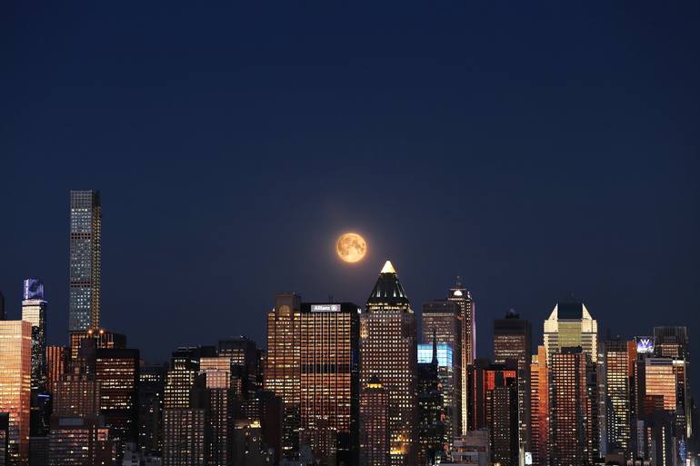 I took this photo from the NJ side of the Hudson River on July 31, 2015. I knew that the moon usually rises over Manhattan at this point, but that evening the sky was a beautiful navy blue. New York gives me different poses in different light every time. I've lived in this city for 23 years but I ca...