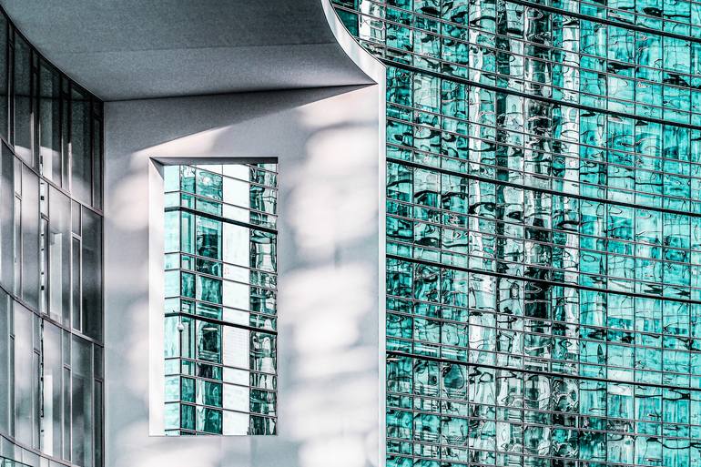 Playing with Milanese architecture, as well as the architecture of all modern cities, abstracts them from their daily lives, takes them to other levels of existence, almost to other worlds... Milano, detail of one of the buildings in the Porta Nuova district. -Light-jet print on photographic paper K...