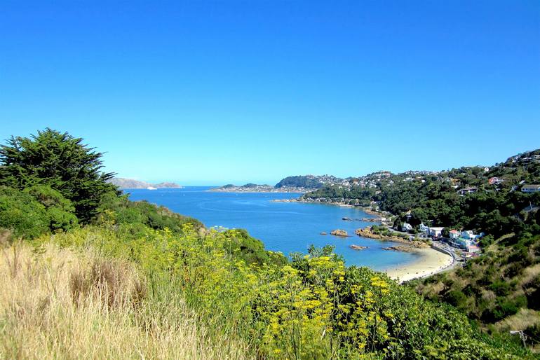 View from the old Military Fortification, Fort Ballance in Miramar, Wellington Overlooking Mahanga Bay. This was a 20 minute walk / hike from my flat in Miramar. I would go there via a tiny woodland trail up over a hill that connected the neighborhoods. Not too far from famed WETA studios.