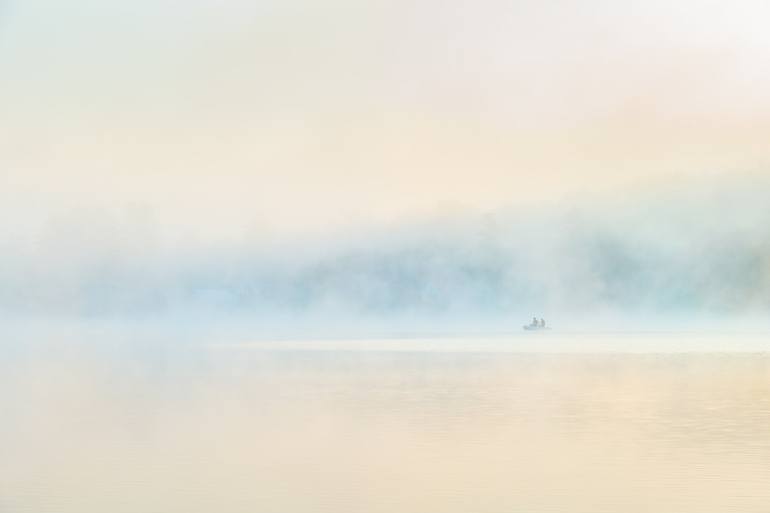 Thinking I was alone on the lake shore, I was surprised to see these two fishermen floating silently in the mist that obscured the landscape. They disappeared and reappeared as the fog swirled over the lake.