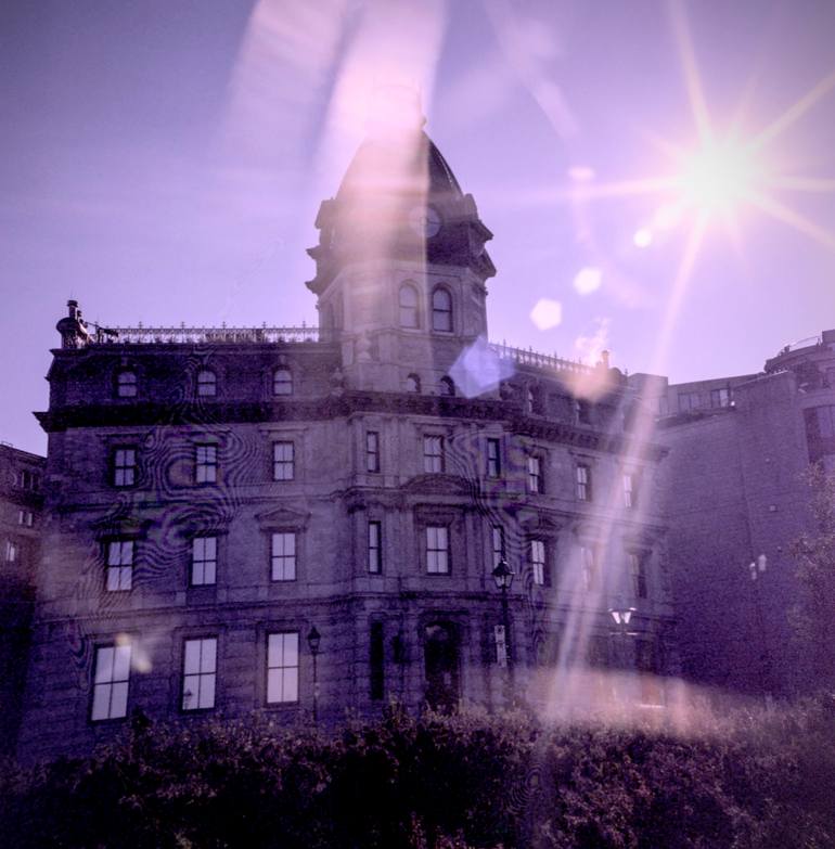 Moiré Montréal, 2015, photography, digital scan to output. The original exposure on medium format film was digitally manipulated post-scanning to draw out the moiré in the frame and play emphasis to lens flare radiating across the frame. In the post-modernist traditions of revealing the means of pro...