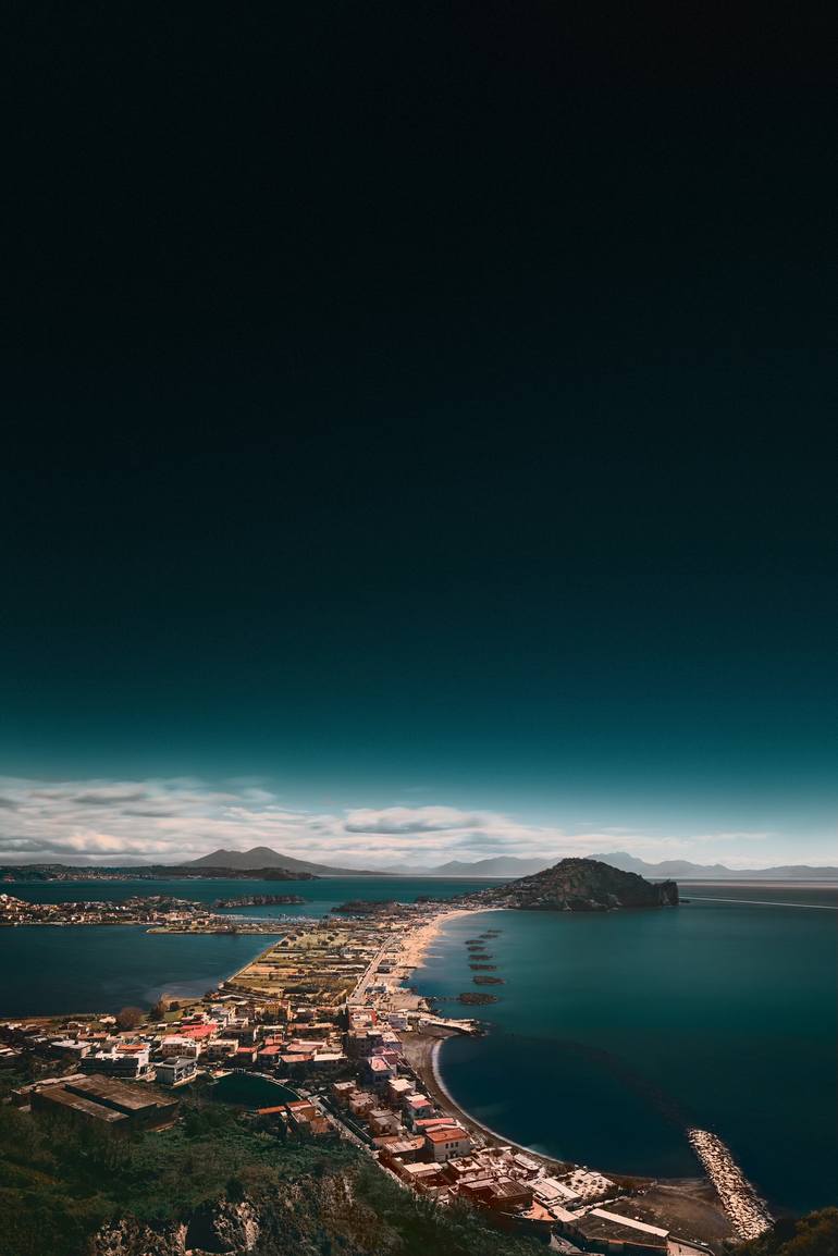 Monte di Procida - 235 x 157 - Limited Edition of 3 This photograph, captured from the heights of Monte di Procida, offers a breathtaking panoramic view of the Campi Flegrei coast. The expansive perspective reveals a delicate contrast between land, water, and sky, creating a harmonious composition ...
