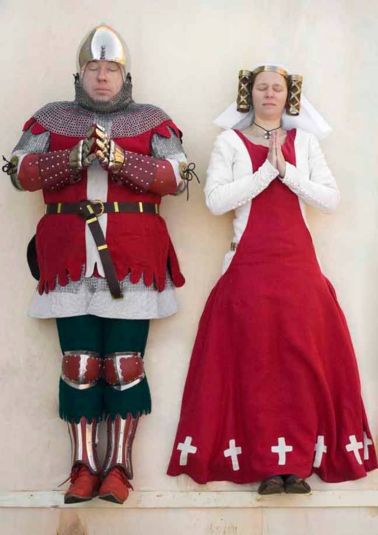 Description: This is a portrait of a couple who participate in the Society of Creative Anachronism shot in the style of the monumental brasses that were popular forms of memorials from the medieval times.