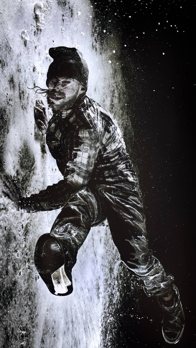 Printed on Photo Rag Baryta 315gsm Hahnemühle Fine Art Paper, and signed by artist. Print Size is 59*105cm on a 70*115cm Fine Art Paper. This photo was shot in my basement. No Photoshop was used. The idea was to emphasize the zero gravity of this movement of Breakdance. I asked a friend who is a ...