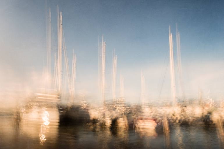 Limited Edition 1/30 signed and numbered - printed in 100% cotton paper. This is a photograph created with ICM (Intentional Camera Movement) and multiple exposures to create the pictoric feel and look of it. It was shot in one of Cancun's Marina before the sunset. The sun rays that hit the sailboat...