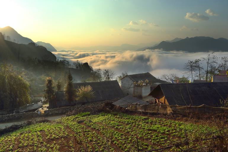 - Morning sunshine. - The scene of the simple houses in the peaceful mountainous area is bathed in the morning light of a warm dawn. The image is printed on museum-grade archival canvas, offering exceptional color depth, fine detail, and long-lasting durability. If you need a custom size or have a...