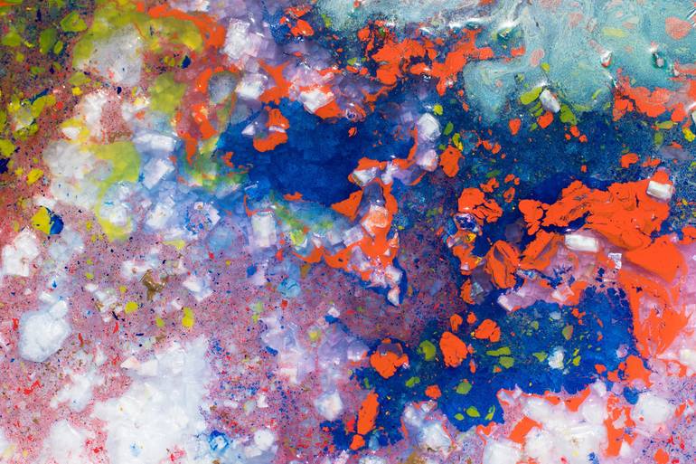 Esta fotografía decorativa captura un momento efímero de color y textura en el emblemático Salar de Uyuni, Bolivia. Inspirada en la libertad creativa que aprendí del renombrado artista boliviano Gastón Ugalde, decidí jugar con pigmentos sobre la sal, dejando que los colores vibraran libremente. Al d...