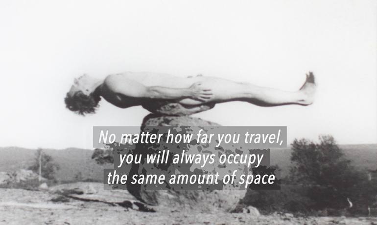 Tjooks law of the conservation of space. “Our universe is, in fact, thinkable without people, but people are inconceivable without a universe; people take place” The place I take in the universe is mine, it is the space where only I am. I mean this quite literally and it is one of the most import...