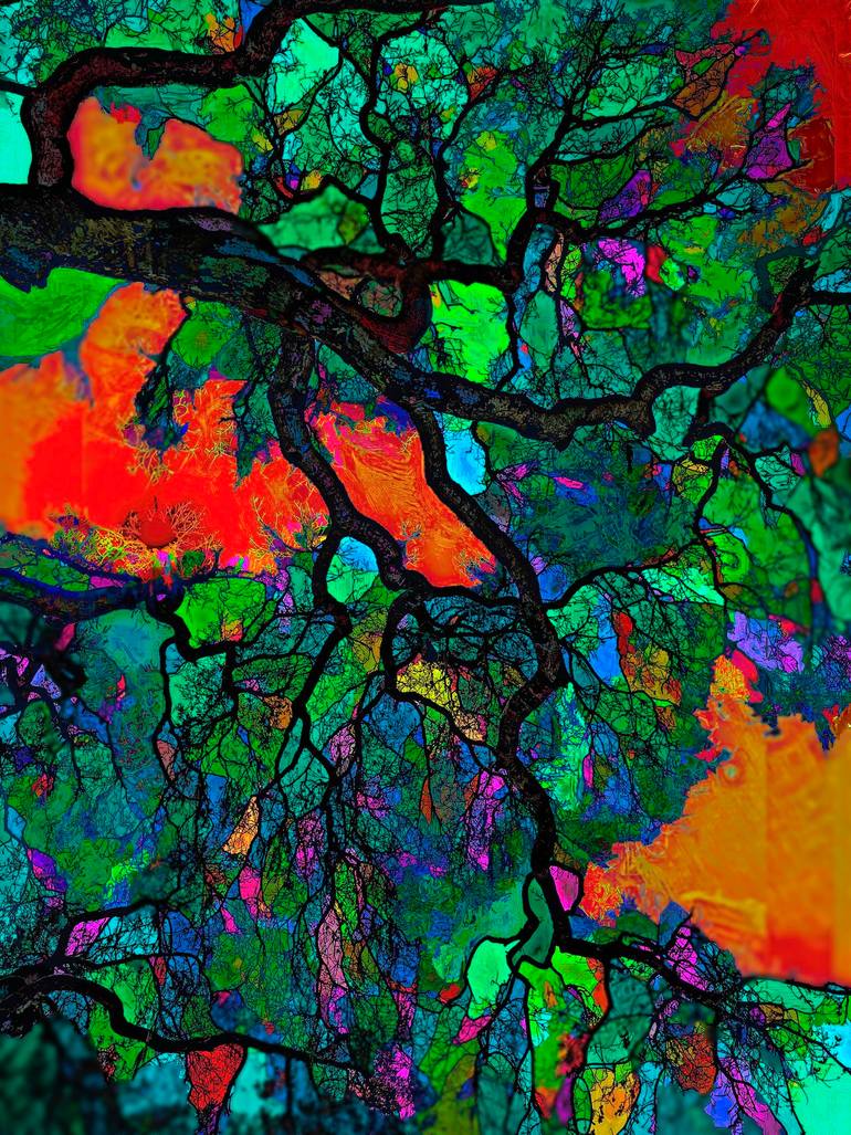 Trees are a source of awesome beauty are essential to life! This particular vibrant oak is located in the Santa Cruz Mountains of California and is stylised with a "stained glass effect". This statement piece is part of a series of digital stained glass trees. I have an affinity for trees and for st...