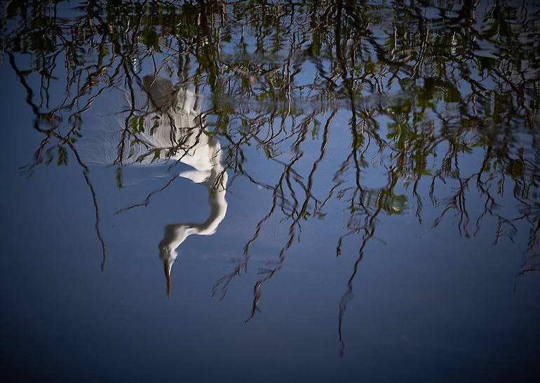 Photo taken at the Caloosahatchee Wildlife Preserve in Palm Beach County, Florida. This is a reflection of the Great White Egret in the water. I was aiming for a bit of a surreal look with distortions created by the reflection of the rippling water.