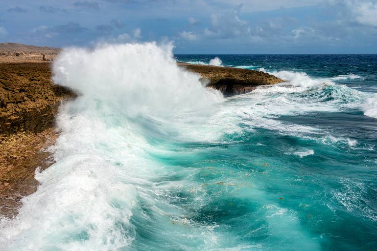On the windward side of Curacao, are constant, large crashing waves along the rocky coastline. Curaçao is a Dutch Caribbean island. It is known for its beautiful beaches tucked into small coves and its colorful coral reefs and rich with marine life. The capital, Willemstad, has pastel-colored colon...