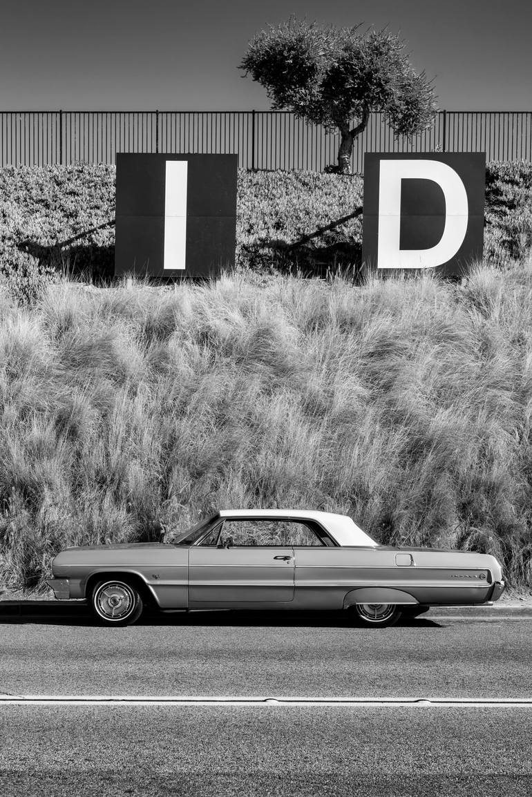 A 1964 Chevrolet Impala lowrider parked in the Oceanside, CA harbor area.