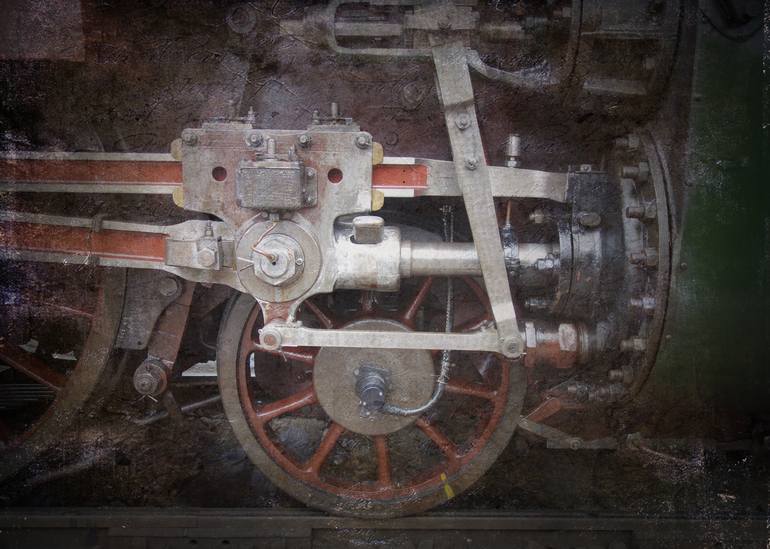 Manipulated Digital Photography Old steam trains in the depot z05 by Ksavera The photo was taken by me, first digitally optimized, then layered with textures and intensively worked out in Photoshop. Fine Art Photography printed on canvas, paper etc.