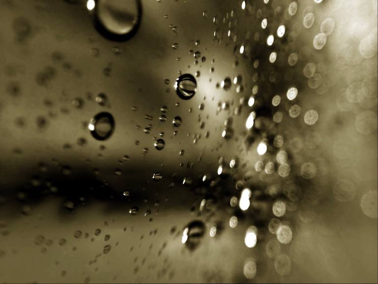 Macro photograph (water on transparent glass), super wide angle at night. Monochrome.