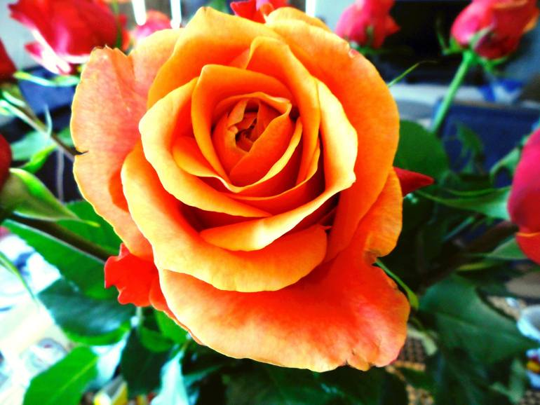 The beauty of the rose in breathtaking orange. Alive and well enjoying the sunlight providing visual joy and an enchanting fragrance for the special lady in your life. Art photograph by Dietmar Scherf (2016). Original (only 1 Original in existence in the world), signed, numbered (as 1/1), titled and...