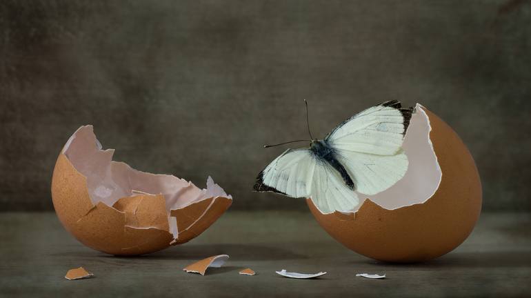 The inspiring comes with the idea, that butterflies are born from an egg The expectant can see in this image something special,different..Maybe a little crazy. I don't know why I chose this style, it's my own style, without looking it just came up.
