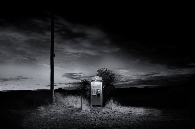 The humble public telephone booth is a are sight these days and I am slowing documenting booths that are located in random isolated parts of the country where rural people still rely on their use for daily communications. I print all my imagery for this series onto Canson Infinity Rag Photographiqu...